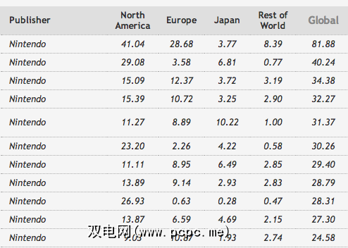 也许您不是一直以来都对最好的游戏感兴趣主观立场。也许您对具体数字感兴趣?好吧,只有一个地方可以解决这个问题-销售数字。而且,如果您想要数字,VGCharts可以为您提供最畅销视频游戏的数据库。这些数字并非100%准确,因为并非所有公司都发布详细的销售数据,但这将为您提供游戏史上最畅销的游戏的口碑,如果没有别的,那么着迷的是看看真正的游戏