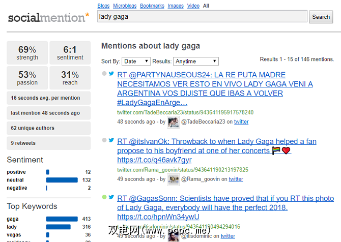 社交提及既是社交搜索引擎,也是一种将多个网络上用户生成的内容聚合到单个供稿中的方法。它可以帮助您搜索短语,事件和提及,但不会让您找到个人。
