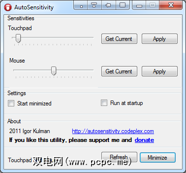 不幸的是,我的硬件似乎无法对触摸板和鼠标的灵敏度进行单独设置,因此该工具无法正常工作。请注意,AutoSensitivity需要.NET Framework 3.5或4.0。