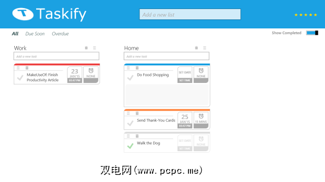 像Taskify一样,可以执行不同的任务放置在不同的列表中,以将其分为住所和工作,或者您可能想进行的其他任何区分。但是,有各种各样的小细节-如果您愿意的话,很容易将其忽略-但它们很有用。例如,您可以将子任务分配给任何任务,或给特定任务加星标,以将其添加到跨所有列表的优先级文件夹中。像这样的小小的接触表明,这是一款基于使用这种工具的经验基础而开发的应用程序,它对用户有极大的好处。