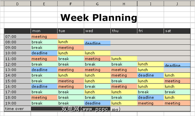 虽然您似乎正在使用每周计划电子表格,但实际上您是在崩溃计划中玩益智游戏。交换有色块以使行或列中的三个或更多个组合。这样可以消除障碍和得分,但是您只有有限的时间,所以要快做。