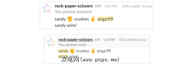 在输入想要的游戏命令后,您和对手选择一个按钮石头,纸或剪刀。答案一旦出炉,赢家就会被揭晓。