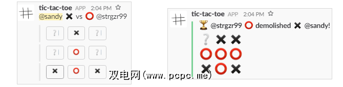 提供命令以在Slack频道或直接发送消息的情况下开始游戏。然后,轮流为X或O选择一个位置,并尽力击败好友。