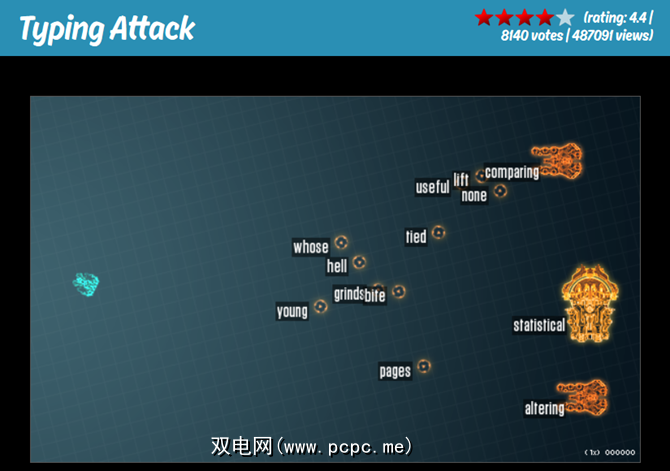 在 Typing Attack (打字攻击)中通过击键取出进入的太空飞船。当船只进入屏幕时,只需键入他们携带的单词即可将其吹走。游戏具有简单,正常和专家级别的难度。因此,您不仅会打分得分,而且键盘输入技巧也会更快。