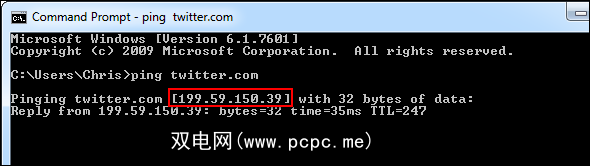 首先,我们需要Twitter的IP地址。要找到它,我们可以使用ping命令(单击开始,键入命令提示符,然后按Enter打开一个)。在命令提示符窗口中键入 ping twitter.com ,您将看到Twitter的数字IP地址。