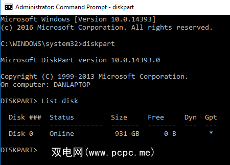 首先,以管理员身份打开“命令提示符"。键入 Diskpart 并按 Enter ,然后键入 List disk (列表磁盘)并再次按 Enter 。