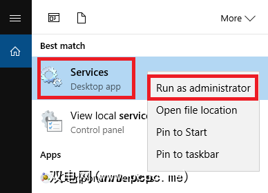 第一步是停止Windows Update服务。搜索服务,右键单击顶部结果,然后以管理员身份打开它。