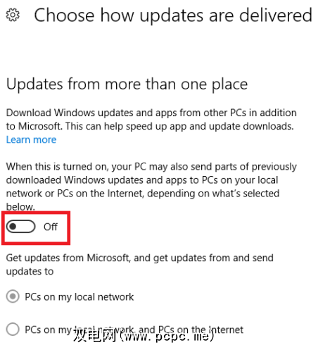 转到开始>设置>更新和安全性>高级选项>选择如何交付更新。到达该位置后,确保将滑块设置为 Off 位置。