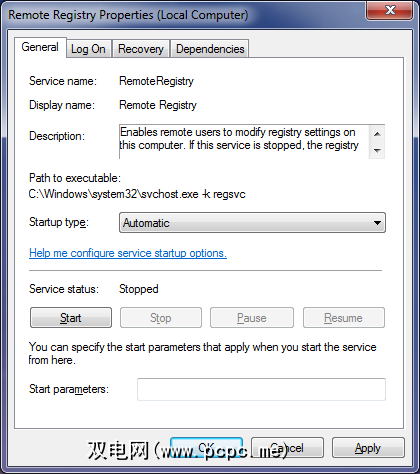 从打开的窗口中,在主列表中找到远程注册表。 ,右键单击它,然后选择属性。默认情况下,启动类型将设置为手动,但是我们希望将其更改为自动。单击确定。