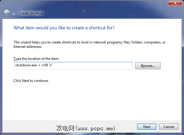 可以,您可以从“开始"菜单重新启动,但我们可以进一步走一步,减少通过创建重新启动快捷方式必须获得的点击量。首先,右键点击您的桌面,然后选择新建>快捷方式。系统将要求您输入快捷方式的位置,因此请输入以下内容: shutdown.exe -r -t 00 -f