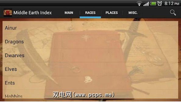 Grab Middle Earth Index在Android上免费。尽管它可以在任何Android 3.0或更高版本的设备上运行,但最好在智能手机上使用,因为文本无法在较大的设备上很好地缩放。