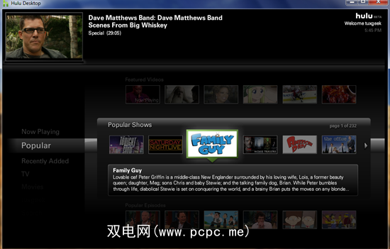 简单地说:这是电视中所有Hulu的视频。这个程序真的没有太多了;您不能添加自己的视频,也不能观看Hulu.com上没有的任何视频。自然,这使它在美国以外毫无用处,但假设您在美国,并且喜欢的大多数演出都在Hulu上,这可能是个不错的节目。