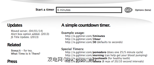 是的,这是网站上的厨房计时器。是的,它的工作原理完全符合您的想象:用鼠标转动表盘,然后按“开始"。这很简单,可以肯定,但是如果您需要一种快速的方式来通知经过一定时间后(通过一个非常熟悉的界面),则此站点仅是一个URL。甚至还有另一种Egg计时器外观。