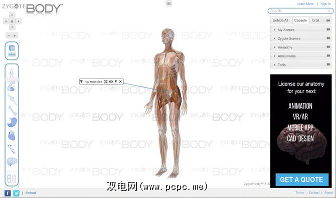 1 。 Zygote人体3D解剖在线可视化工具