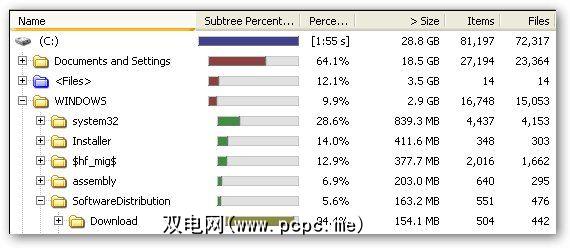 为此,我使用WinDirStat程序,该程序代表Windows目录统计。它扫描您的整个系统,并将所有内容组织到一个易于导航的树中,该树向您显示哪些文件夹占用了最多的空间,例如WinDirStat或WizTree,使您更容易查看主要问题所在。我强烈推荐。