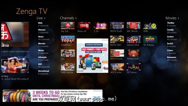 Zenga TV另一个免费应用程序,旨在提供一系列印度和国际直播向Windows 8用户提供电视(包括电影)。