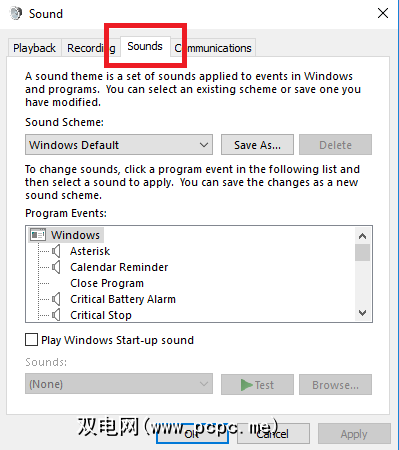 您可以编辑右键单击开始>控制面板>声音,然后打开声音标签,系统会发出声音。
