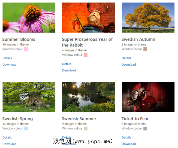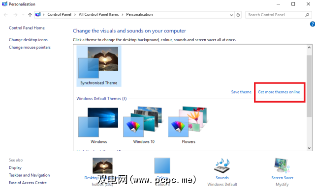 但是,要获取实际选项,您需要单击在线获取更多主题并前往Windows下载中心。
