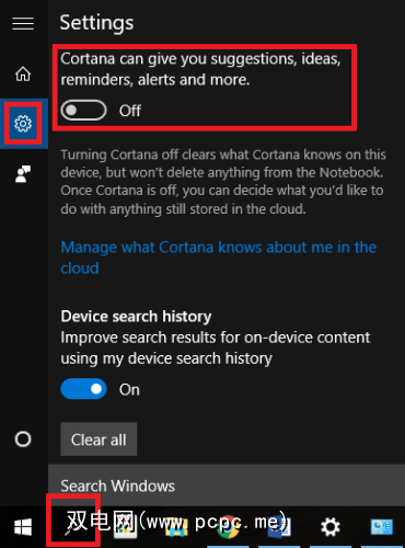 让Cortana释放喜悦的感觉很容易。首先,您需要通过单击任务栏上的搜索图标并选择齿轮图标来确保已启用该服务。