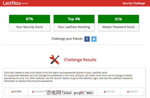大多数密码管理器都具有一些很酷的功能,您可以利用这些功能来提高安全性。尽管不使用它们并不一定会使您的安全性降低,但肯定可以使他们更安全。例如,LastPass具有一项称为“安全挑战"的功能,它可以查看您的所有密码并给您打分。该分数取决于您的密码强度,自更改密码以来已有多长时间,以及是否保存过密码的网站在过去是否曾违反密码。