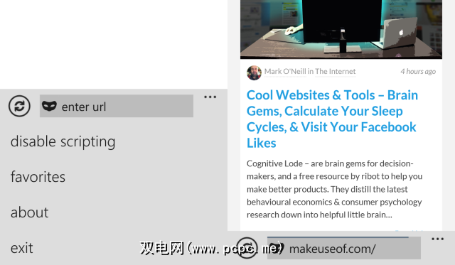 Windows Phone可以使用其他浏览器,但此处提供的浏览器是Internet Explorer的替代品。每个都有自己的优势,但最重要的是,每个功能都可以完全替代本机应用程序。