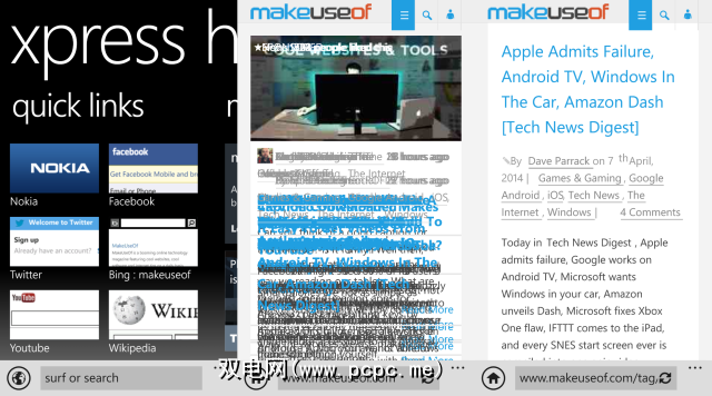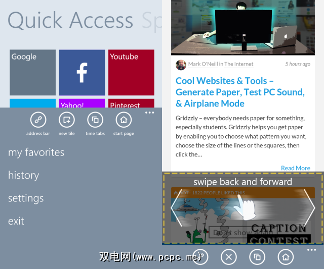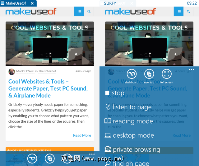 首先,我们有一个Surfy,这是一个免费的,精美的浏览器,具有多种功能。除了桌面样式的标签控件,书签和历史记录,全屏,桌面和阅读模式外,浏览器还提供了文本到语音的收听页面功能。从Windows的任何位置开始,您可以使用Windows Phone的内置文本识别提示浏览器开始阅读。本质上,您可以在开车时阅读网页!