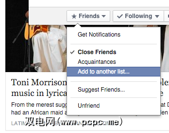 下拉朋友菜单,您会看到选项添加到另一个列表… >