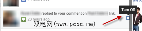 在通知框的右侧,当您将鼠标悬停在上方时,上面有一个小十字,上面写着“关闭"。如果您单击该按钮,它将关闭该状态更新的所有将来通知。但是将来,如果您决定重新加入对话,则可以单击该叉号,然后再次打开通知。