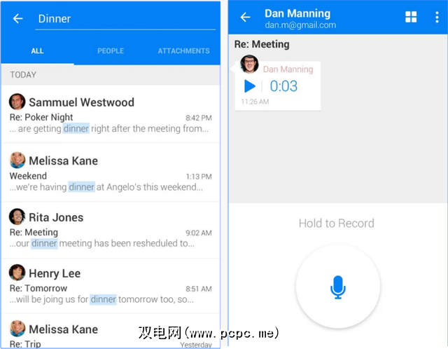它将立即按发件人对收件箱进行排序,并以类似于聊天的方式显示电子邮件对话。它还提供了“快速回复"功能,使您可以像WhatsApp一样发送简短的语音摘要。