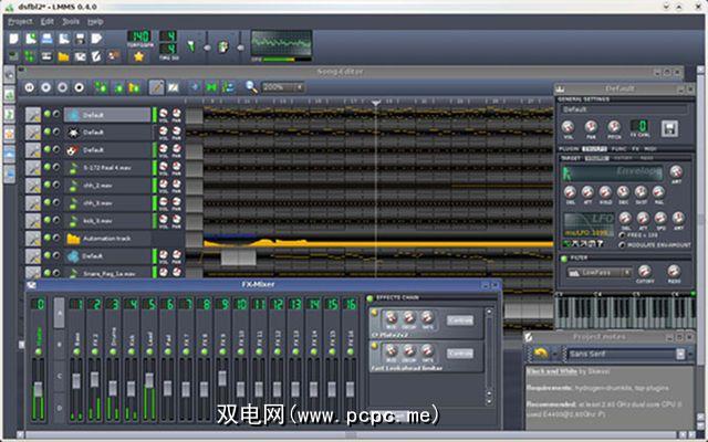 LMMS(以前称为Linux MultiMedia Studio)是另一个不错的选择。这是完全免费的,但略逊于Ardour。界面较难掌握,学习曲线也较陡峭,但仍然有用。