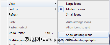 如果您正在寻找一种超级简单且100%无害的方法来欺骗某人,请使用其桌面图标。首先,获取当前桌面的屏幕截图。接下来,隐藏所有桌面图标:右键单击桌面,转到查看,然后取消选择显示桌面图标。