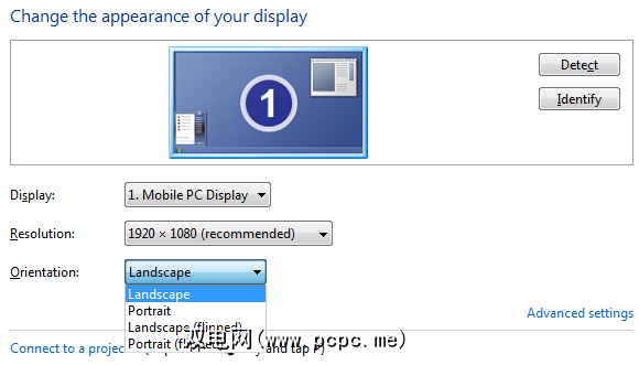 在在Windows中,您可以更改屏幕方向:右键单击桌面,然后选择屏幕分辨率。在 Orientation 下,选择默认的 Landscape 以外的其他选项。要上下翻转屏幕,请使用横向(翻转)。结果,一切都会倒过来。