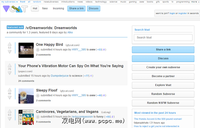 乍一看,该网站看起来与Reddit的网站极为相似。在页面顶部列出Subverse(Voat的subreddit等效项),在右上角显示用户名,并在垂直下方列出帖子-带有upvote和downvote箭头。