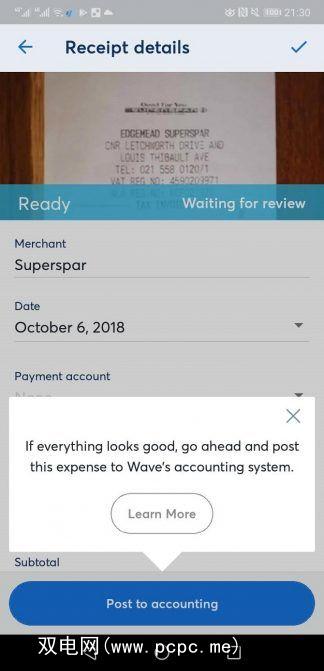 唯一的缺点是,如果您想管理收据,提交后,您将必须登录Wave网站。否则,这很擅长完成工作。