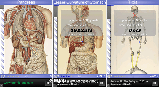 Speed Anatomy Quiz (速度解剖测验)是一款游戏,要求您指出一定时间内的各个身体部位。您越快越精确,您所赚取的积分就越多。当然,此应用仅教您有关身体部位位置的信息,而不是有关功能的信息。但是,这是迈向了解更多有关人体的第一步。