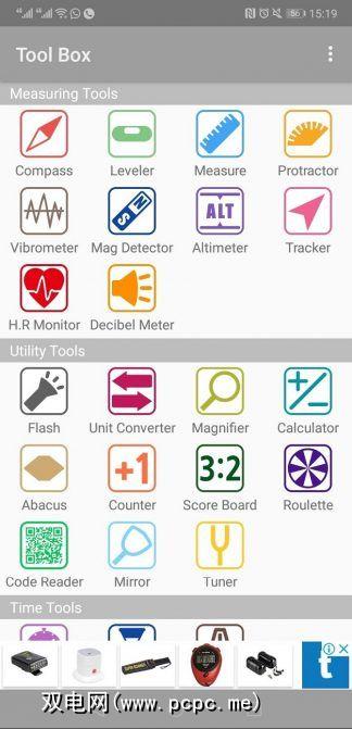 如果您想要一个不太拥挤的多功能工具箱应用程序,Tool Box是一个不错的选择选择。它的工具非常基础,但这意味着该应用占用的手机存储空间更少。