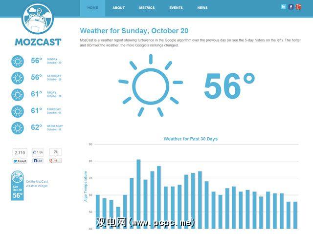 您可以找到有趣的概览,这些变化是由Google一年来进行的数百次算法更改导致的排名变化,位于MOZCast页面上,旨在提供Google算法中的“湍流"视图。