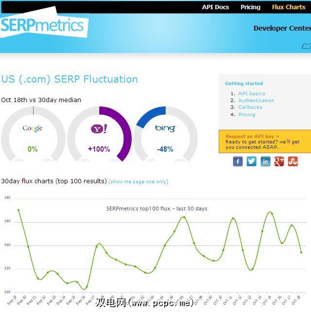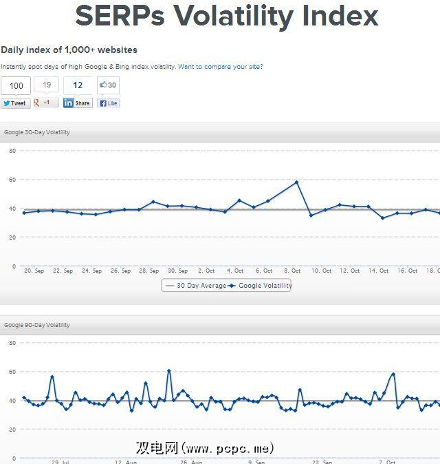 有一些衡量Google,Yahoo和Bing搜索结果波动的指标,以及一个有用的30天图表,显示了SERP波动的历史记录。