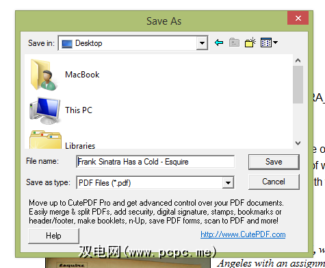 CutePDF具有易于记忆的名称和简单的界面,是一个不错的选择。当需要打印时,将只询问您要保存PDF的位置。很简单,可以肯定,但这可能是大多数人想要的。