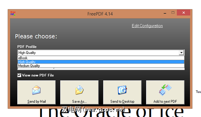 FreePDF,提供由德国网站提供,对英语用户也同样有效。使用它,您将看到以下对话框: