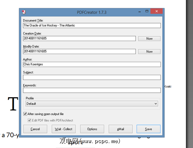 上述程序可以创建PDF,但是如果需要的话控制该文件的元数据?这是开源PDF打印机PDFCreator提供的关键优势。打印时,您可以选择添加作者和其他信息。