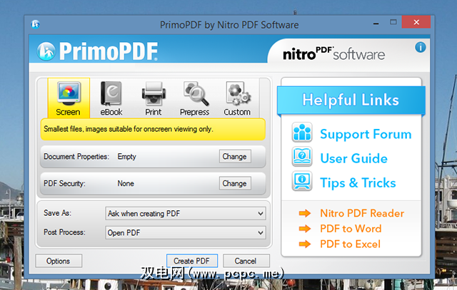 但是如果您想让我告诉您什么是最好的,我必须说:这实际上取决于您要寻找的内容。我想要一种简单的方法来创建PDF文件,因此像CutePDF和doPDF这样的简洁选项最适合我。如果要支持PDF安全性,请使用PrimoPDF。如果要元数据控制,请使用PDF Creator。如果您讨厌废话,请使用doPDF或FreePDF-两者都很干净。太可惜了,很多其他应用程序都包含垃圾软件,但是在安装过程中要注意,您应该会很好。