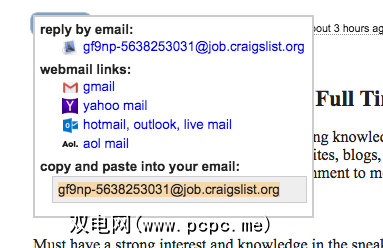 如果您对工作感兴趣,Craigslist会提供“答复" “"按钮将打开一些电子邮件联系方式。