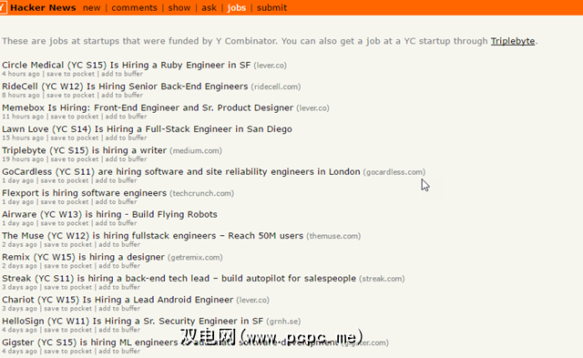 Hacker News的职位栏非常大。但是,您不会在上面找到“柠檬水摊位供应商"的空缺。 Hacker News仅从事编程和工程工作,而工作页面顶部迫切需要强调,它们仅显示由Y Combinator资助的初创公司的职位空缺。这是一家每年向少数科技创业公司投资少量资金的公司。自2005年以来,他们一直在负责Dropbox和Reddit的兴起。