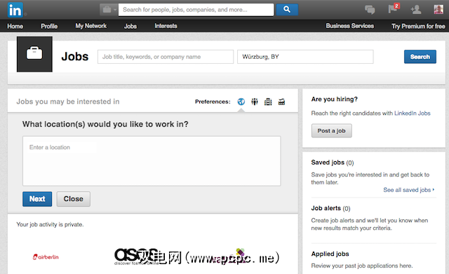 “职位"部分包含常用的搜索引擎,职位提醒,已保存的职位空缺以及您已申请的工作(因此您可以维护概述)。但很好的一点是,LinkedIn会自动为您提供您认为可能感兴趣的职位空缺列表(可能是通过扫描简历页面)。例如,它告诉我亚马逊正在寻找内容编辑器。很好。