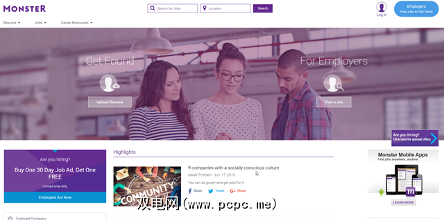 Monster是另一个出色的职位空缺在线资源,非常好众所周知。它是美国最大的工作网站之一,自1999年以来一直存在,每月拥有超过6000万访问者。从字面上看,它确实是一个“怪物"。 Alexa在其类别中排名第三,仅次于Indeed和CareerBuilder(我们将在本文后面讨论这两个类别)。