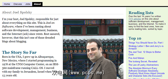 为了您的利益,Joel列出了他的“十大"文章,以方便浏览。他还为“新开发人员"提供了一系列有用的文章,这些文章讨论了新手编码人员的心态,在感到厌倦时如何进步以及其他必读的建议。