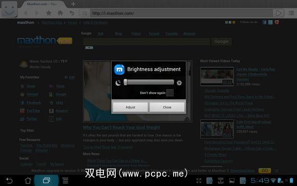 Maxthon在其他浏览器之上提供的一些独特功能包括“夜间阅读"您可以从右侧的下拉菜单中启用的模式。您可以调整屏幕的亮度,以使屏幕在黑暗的房间中非常容易阅读,而不会在此过程中使您的眼睛焦灼。我绝对喜欢此功能,尤其是在床上阅读而又不打扰房间中其他任何人的地方。