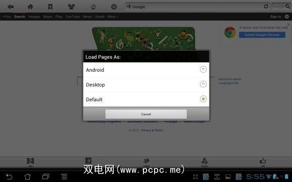 当然,如果我的平板电脑并不总是处于Wi-Fi网络上,并且有时只想使用移动版本的网页,那么我喜欢点击Android /桌面图标并立即点击即可切换设置的功能
