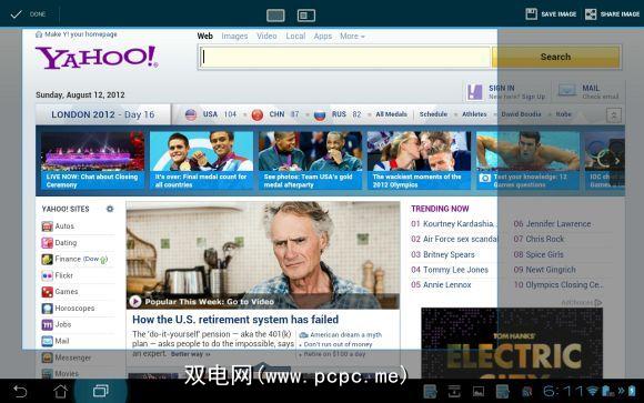 这将启用“屏幕截图"模式,您可以在其中裁剪浏览器显示的一部分,然后将图像保存到您的设备,或与您喜欢的社交网络上的朋友共享它。